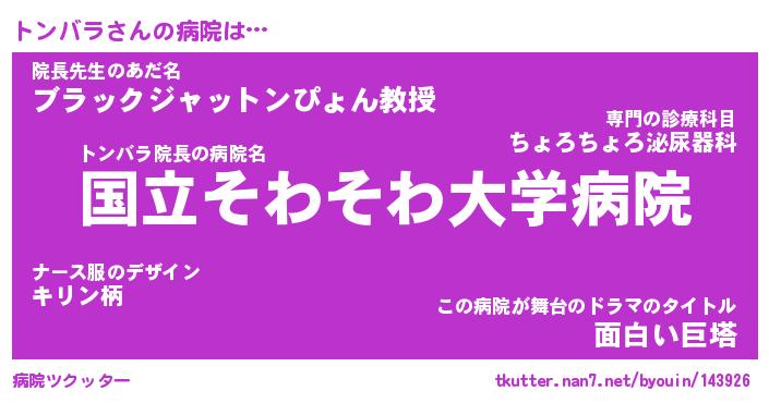 | 男性向けラノベタイトル風あだ名 | 『トンバラの憂鬱』 |
