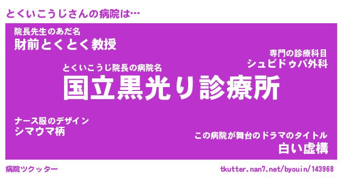 | 女子向けラノベタイトル風あだ名 | 『(仮)とくいこうじのやんごとなき事情』 |