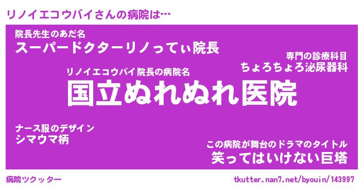 | 2回繰り返すあだ名 | 『リノリノ』『リリノノ』『ぎょぎょ』 |