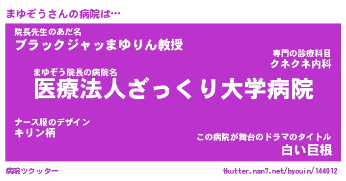 | 胡散臭い通販商品みたいなあだ名 | 『億万長者になれる霊験あらたかなお札…その名も「まゆぞう」』 |