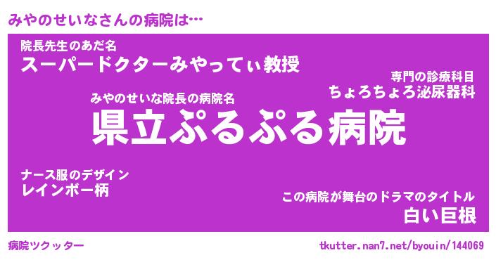 | ヘコむあだ名 | 『みやふぇ~』『つくし』『みやお』 |