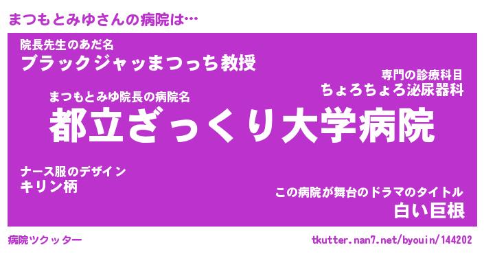 | 恥ずかしいあだ名 | 『プリティーまつもとみゆ』『まつっちょ』 |