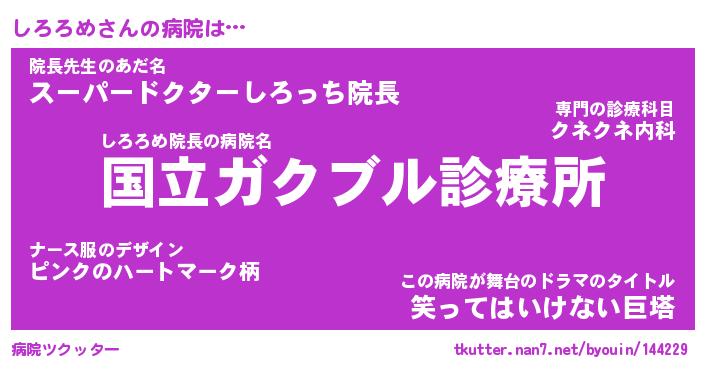 | 2回繰り返すあだ名 | 『しろしろ』『ししろろ』『くにくに』 |