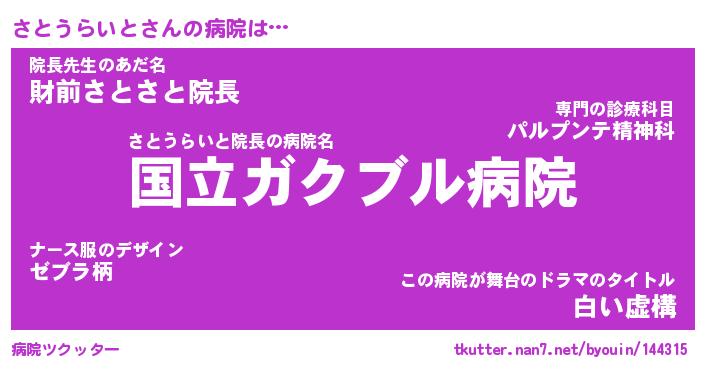| 男性向けラノベタイトル風あだ名 | 『さとうらいとの憂鬱』 |