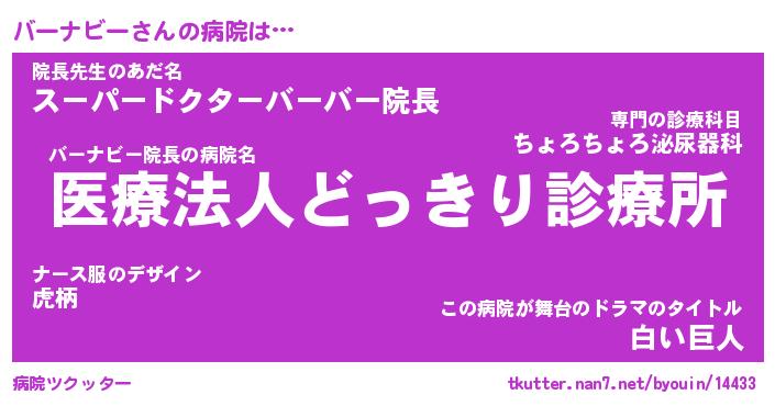 | 男性向けラノベタイトル風あだ名 | 『バーナビーアートオンライン』 |