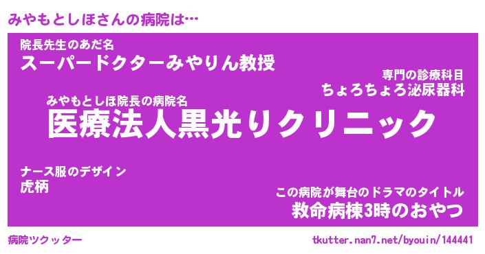 | ヘコむあだ名 | 『みやにー』『つくし』『みや太郎』 |