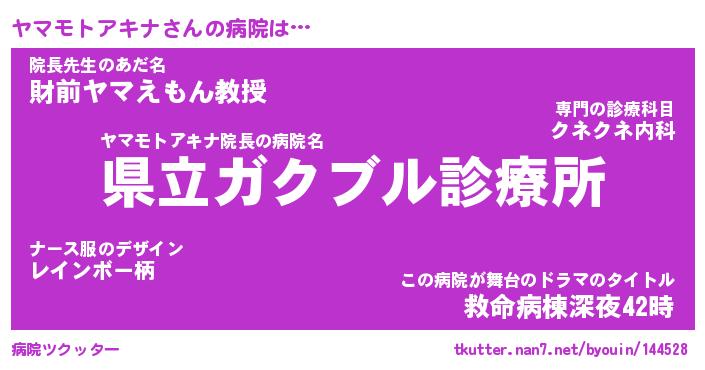 | 肩書あだ名 | 『ヤマモトアキナ店長』 |