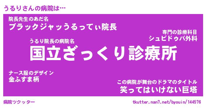 | 男性向けラノベタイトル風あだ名 | 『うるりの憂鬱』 |