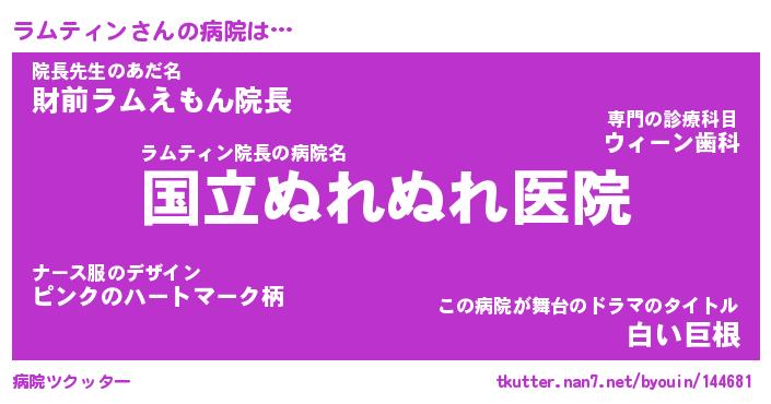 | 男性向けラノベタイトル風あだ名 | 『ラムティンの憂鬱』 |