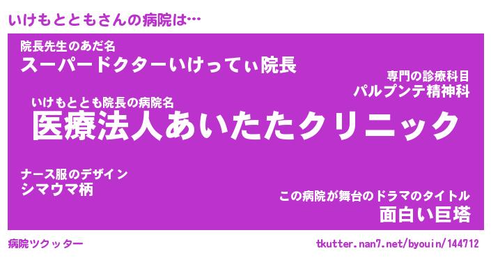 | ヘコむあだ名 | 『いけっふぃ~』『つくし』『いけを』 |
