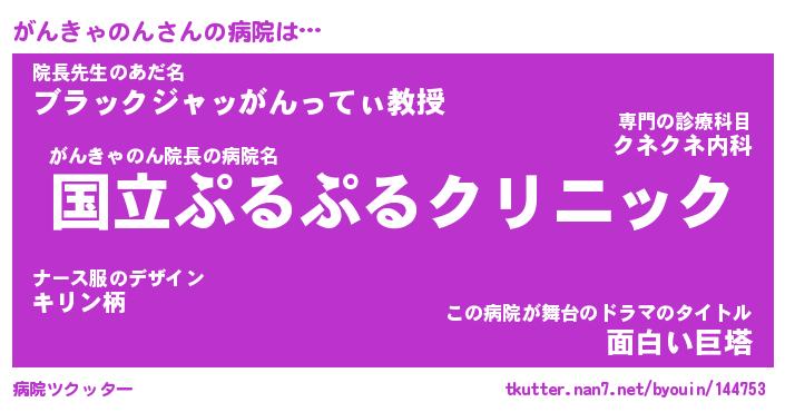 | 男性向けラノベタイトル風あだ名 | 『がんきゃのんの憂鬱』 |