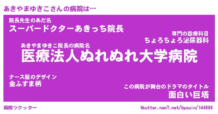 | 肩書あだ名 | 『あきやまゆきこ社長令嬢』 |