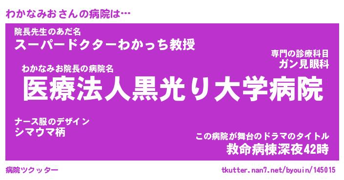 | 胡散臭い通販商品みたいなあだ名 | 『億万長者になれるブレスレット…その名も「わかなみお」』 |