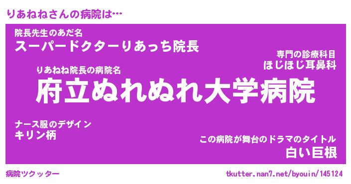 | 男性向けラノベタイトル風あだ名 | 『りあねねの憂鬱』 |