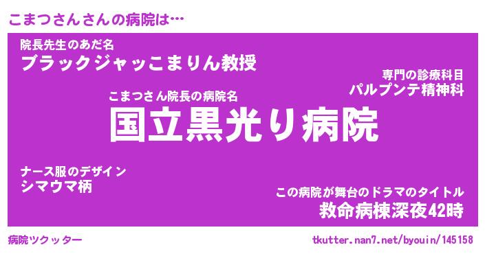| ヒーロー風カッコイイあだ名 | 『スーパーコマツサン』『幻影騎士コマ』 |