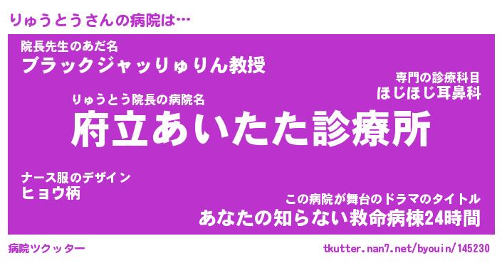 | 男性向けラノベタイトル風あだ名 | 『りゅうとうの憂鬱』 |