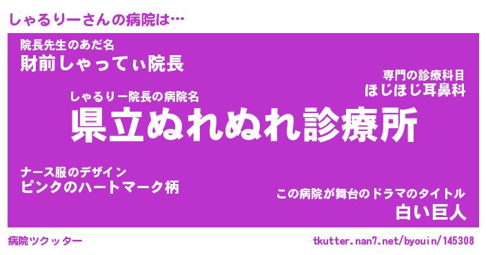| 男性向けラノベタイトル風あだ名 | 『しゃるりーの憂鬱』 |