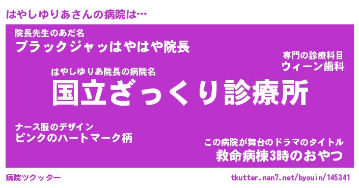 | 肩書あだ名 | 『はやしゆりあ御曹司』 |