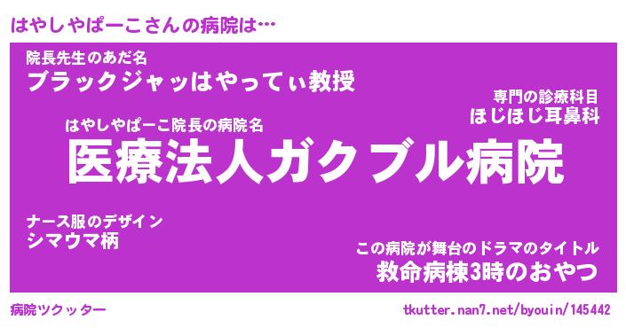 | 欧米人風あだ名 | 『マイケルはやしやぱーこ』 |