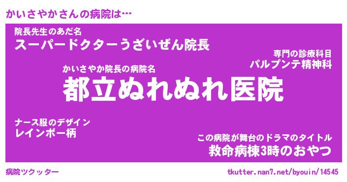 | 2回繰り返すあだ名 | 『かいかい』『かかいい』『うねうね』 |