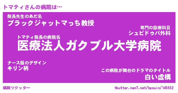 | 欧米人風あだ名 | 『マイケルトマティ』『ウサイントマティ』 |