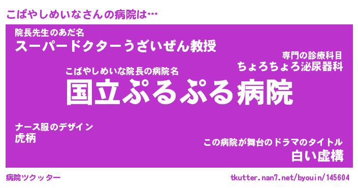 | ヘコむあだ名 | 『こばにゅー』『牛乳』『こばぷりん』 |