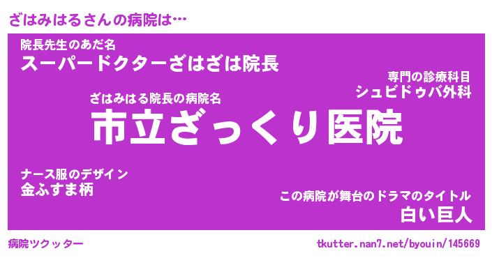 | 伝説のあだ名 | 『伝説のスナイパーざはみはる』 |