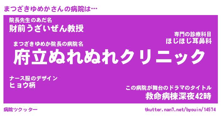 | ヘコむあだ名 | 『まつもー』『酢こんぶ』『まつっ子』 |