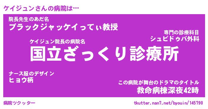 | 伝説のあだ名 | 『伝説のスナイパーケイジュン』 |