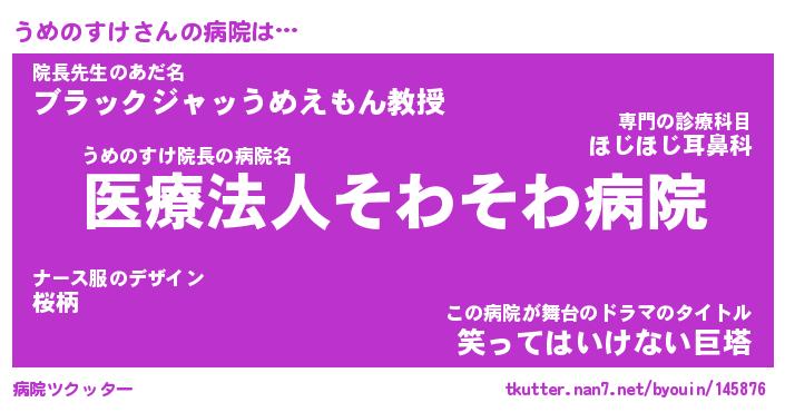 | 胡散臭い通販商品みたいなあだ名 | 『億万長者になれるブレスレット…その名も「うめのすけ」』 |