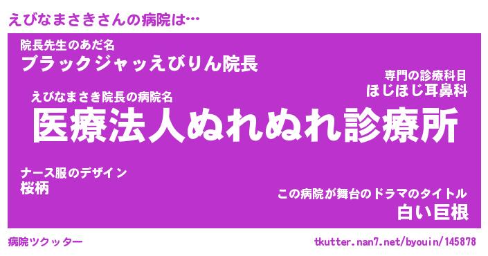| 恥ずかしいあだ名 | 『プリティーえびなまさき』『えびっちょ』 |