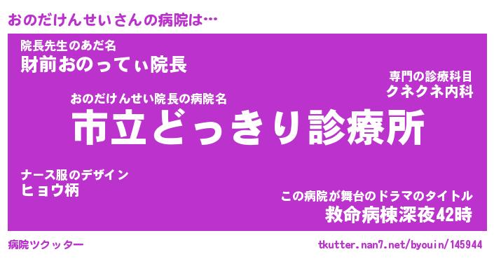 | 2回繰り返すあだ名 | 『おのおの』『おおのの』『ぬるぬる』 |