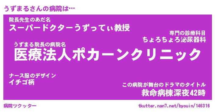 | 意味不明あだ名 | 『ペロリンうずまる』『永久保存うずまる』 |