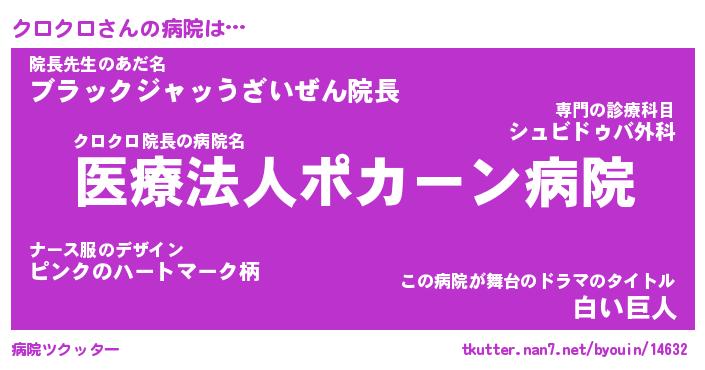 | 2回繰り返すあだ名 | 『クロクロ』『ククロロ』『いらいら』 |