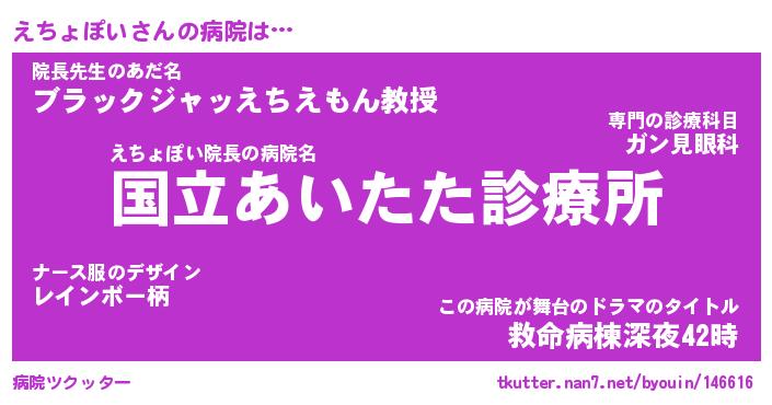 | 男性向けラノベタイトル風あだ名 | 『えちょぽいの憂鬱』 |
