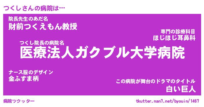 | ヘコむあだ名 | 『つくにゅー』『酢こんぶ』『つくお』 |