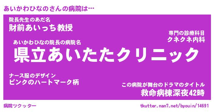 | 男性向けラノベタイトル風あだ名 | 『あいかわひなのの憂鬱』 |
