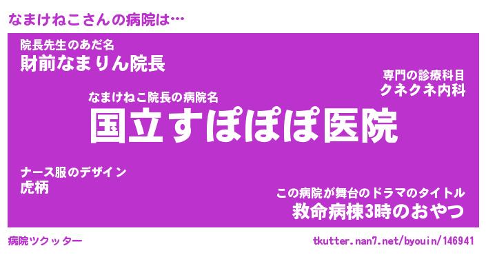 | ヒーロー風カッコイイあだ名 | 『スーパーナマケネコ』『銀牙騎士ナマ』 |