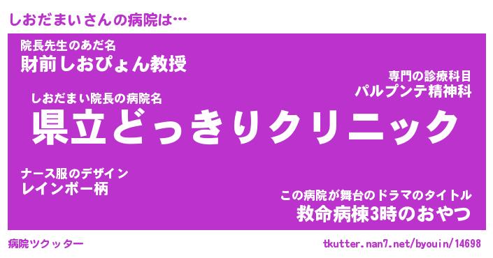 | 男性向けラノベタイトル風あだ名 | 『しおだまいの憂鬱』 |