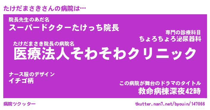 | 2回繰り返すあだ名 | 『たけたけ』『たたけけ』『いそいそ』 |
