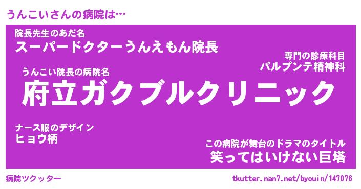| ヒーロー風カッコイイあだ名 | 『スーパーウンコイ』『黄金騎士ウン』 |