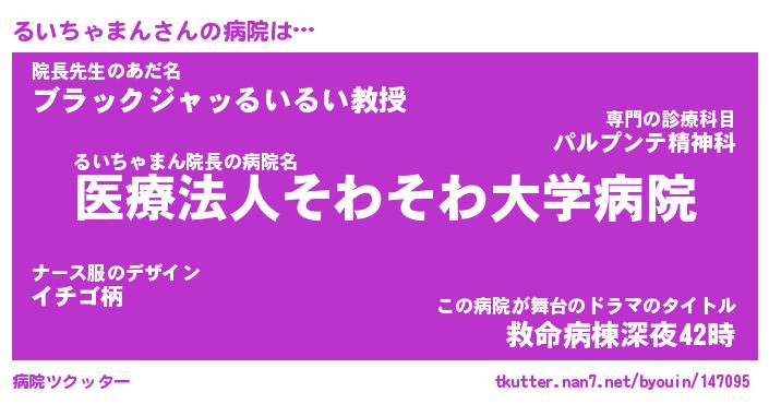 | ヘコむあだ名 | 『るいふぇ~』『豆乳』『るいを』 |
