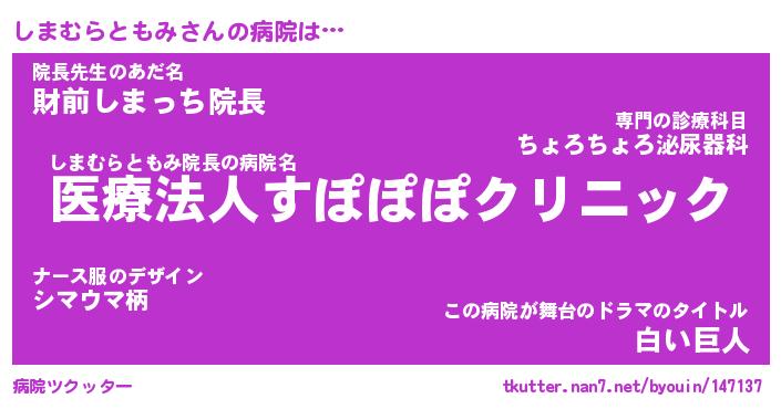 | 肩書あだ名 | 『しまむらともみ社長令嬢』 |