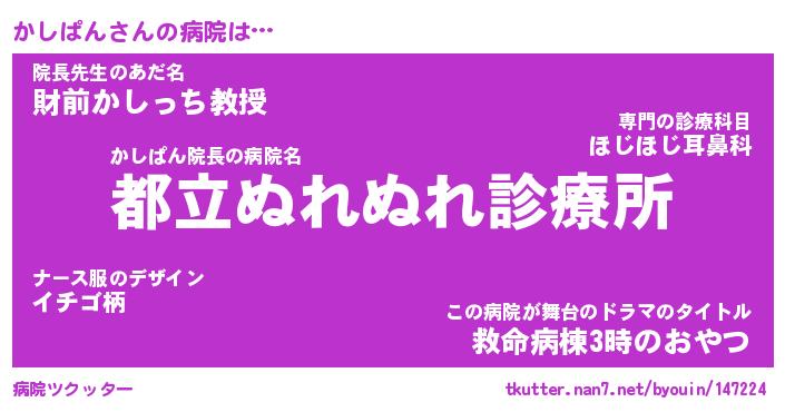 | 意味不明あだ名 | 『ペロリンかしぱん』『永久保存かしぱん』 |