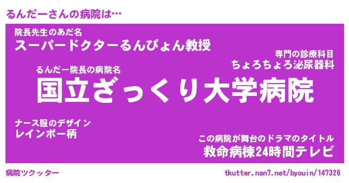 | 男性向けラノベタイトル風あだ名 | 『るんだーの憂鬱』 |