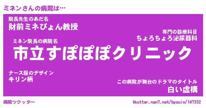 | 2回繰り返すあだ名 | 『ミネミネ』『ミミネネ』『ぬるぬる』 |