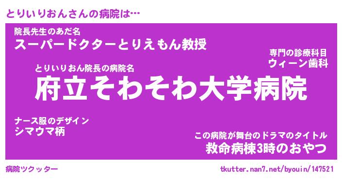 | 2回繰り返すあだ名 | 『とりとり』『ととりり』『うねうね』 |