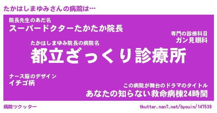 | 肩書あだ名 | 『たかはしまゆみ御曹司』 |