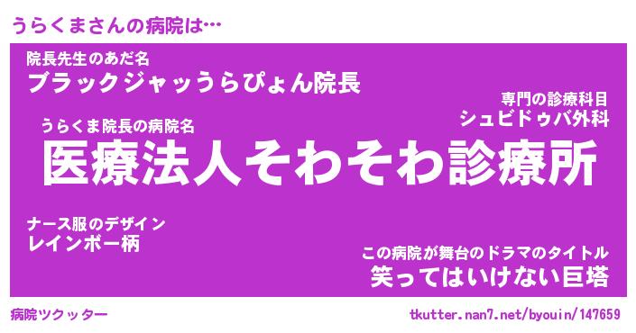 | 意味不明あだ名 | 『ペロリンうらくま』『永久保存うらくま』 |