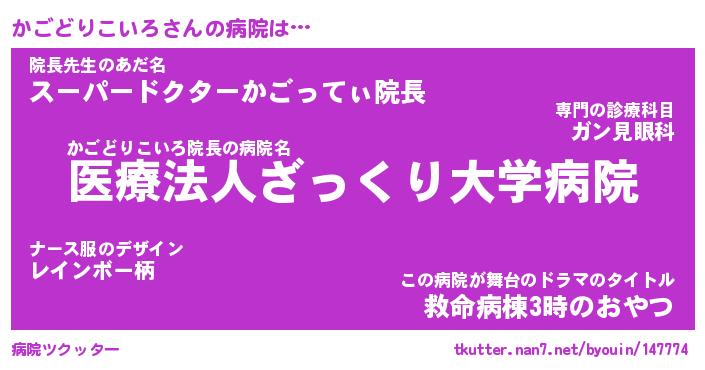 | 2回繰り返すあだ名 | 『かごかご』『かかごご』『ねちねち』 |